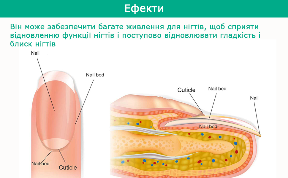 - Допомагає захистити нігті